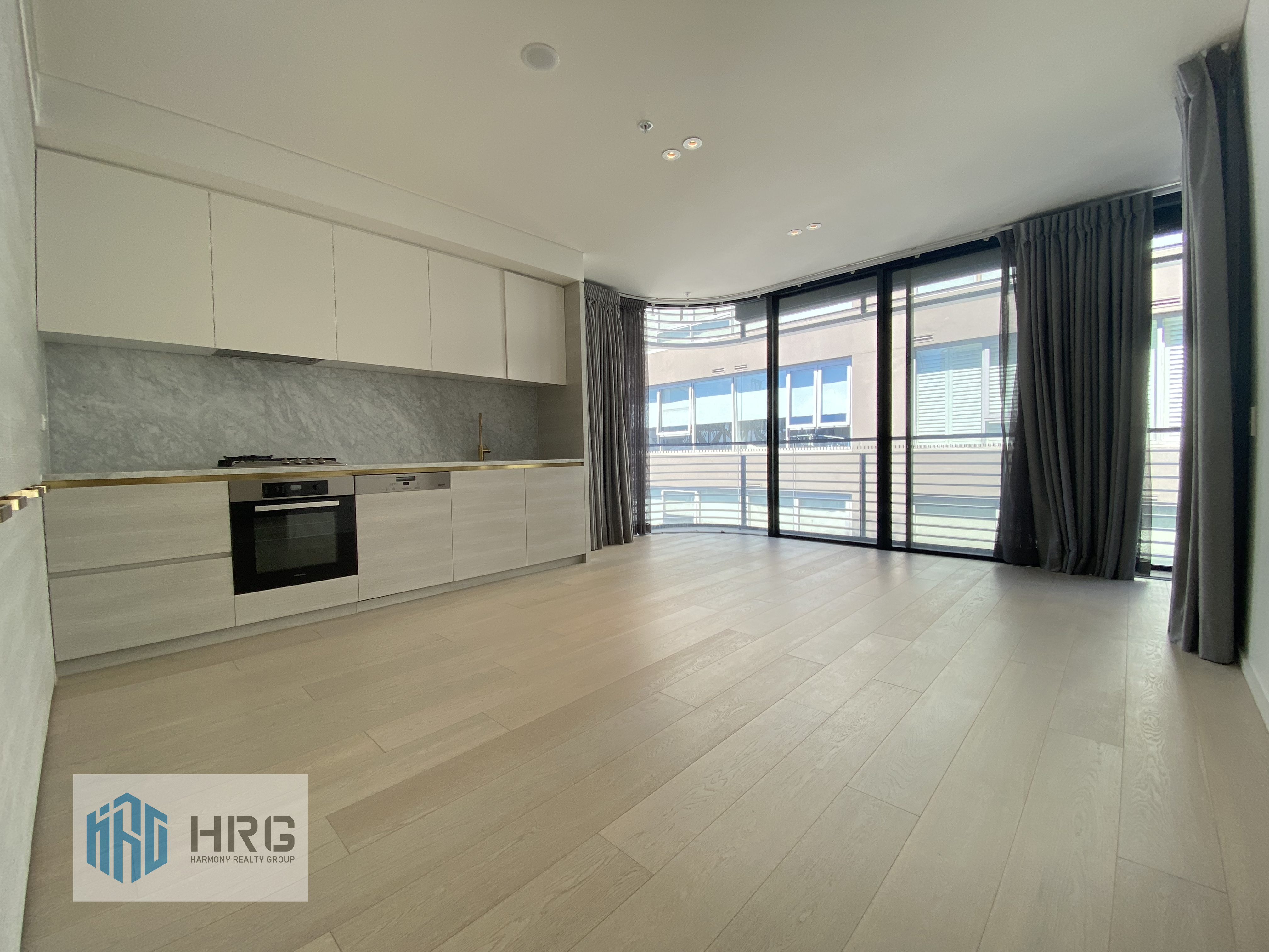- Open plan living/dining wrapped in floor-to-ceiling windows with a covered balcony