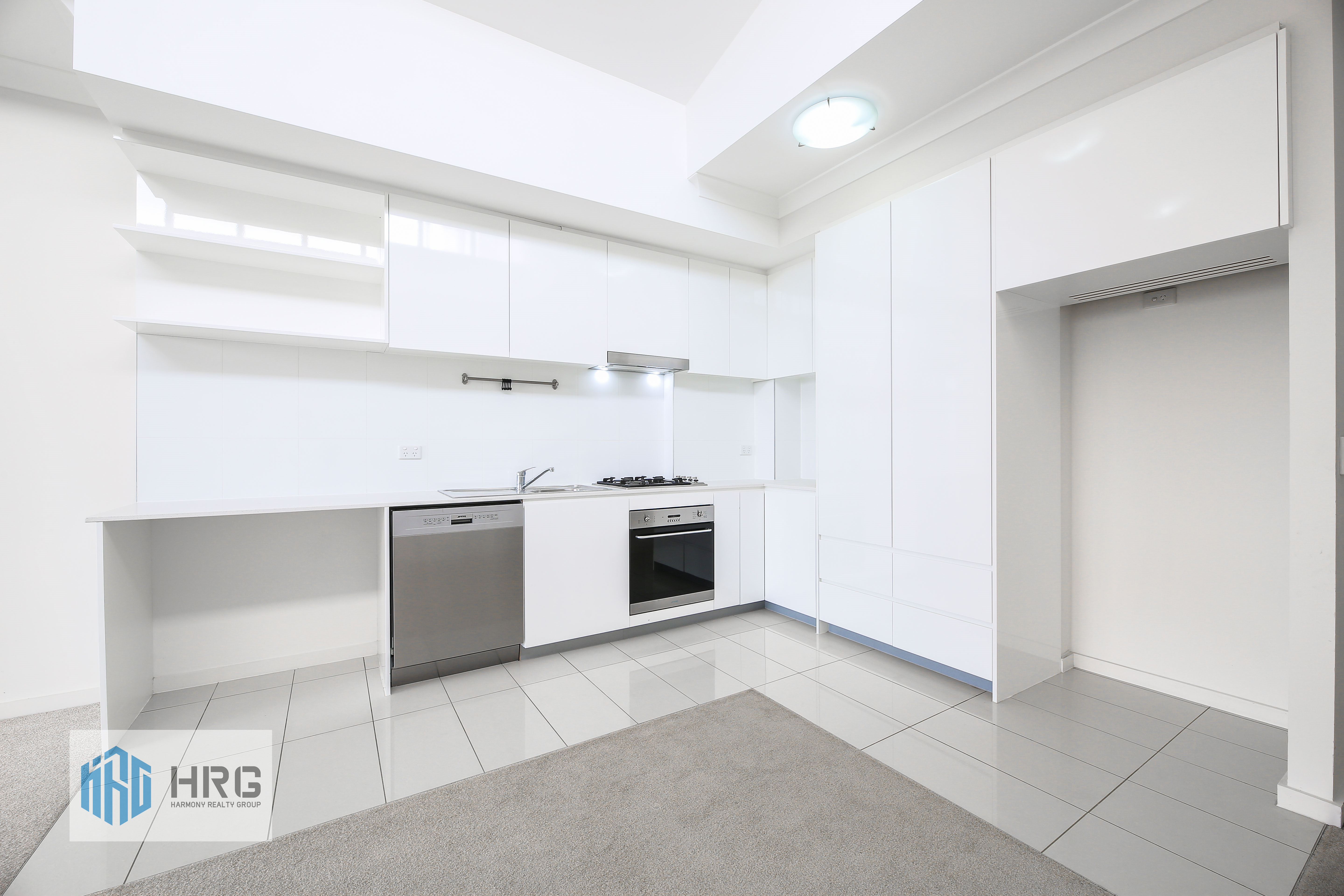 - Stylish kitchen with gas cook top, dishwasher, oven, stainless steel appliances and enormous cupboard space.